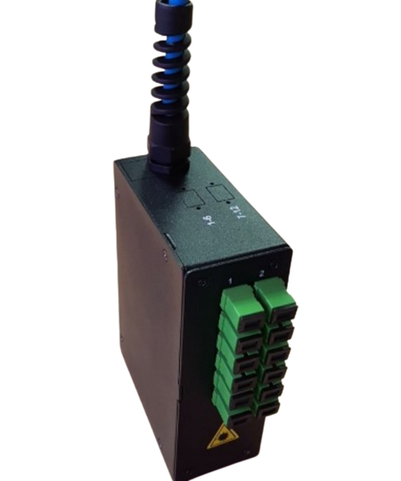 Designed for minimal-space installations, this mini DIN rail fibre enclosure supports both pre-terminated and spliced fibre. Suitable for loose tube or riser cable, it offers flexible cable entry options and reliable protection in a compact steel housing.