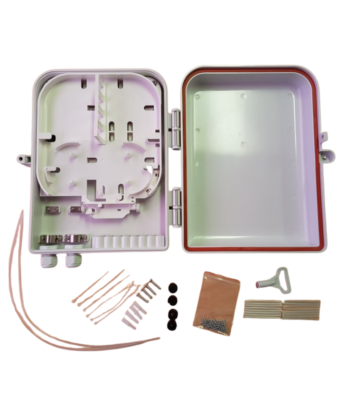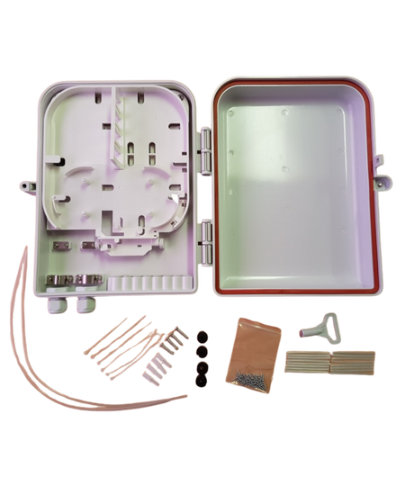 Available in 6 fibre, 12 fibre and 24 fibre configurations, this enclosure is ideal for wall-mounted fibre distribution, service transitions and small network termination points. Each size is supplied with the appropriate splice protection and mounting hardware, making installation straightforward and consistent.